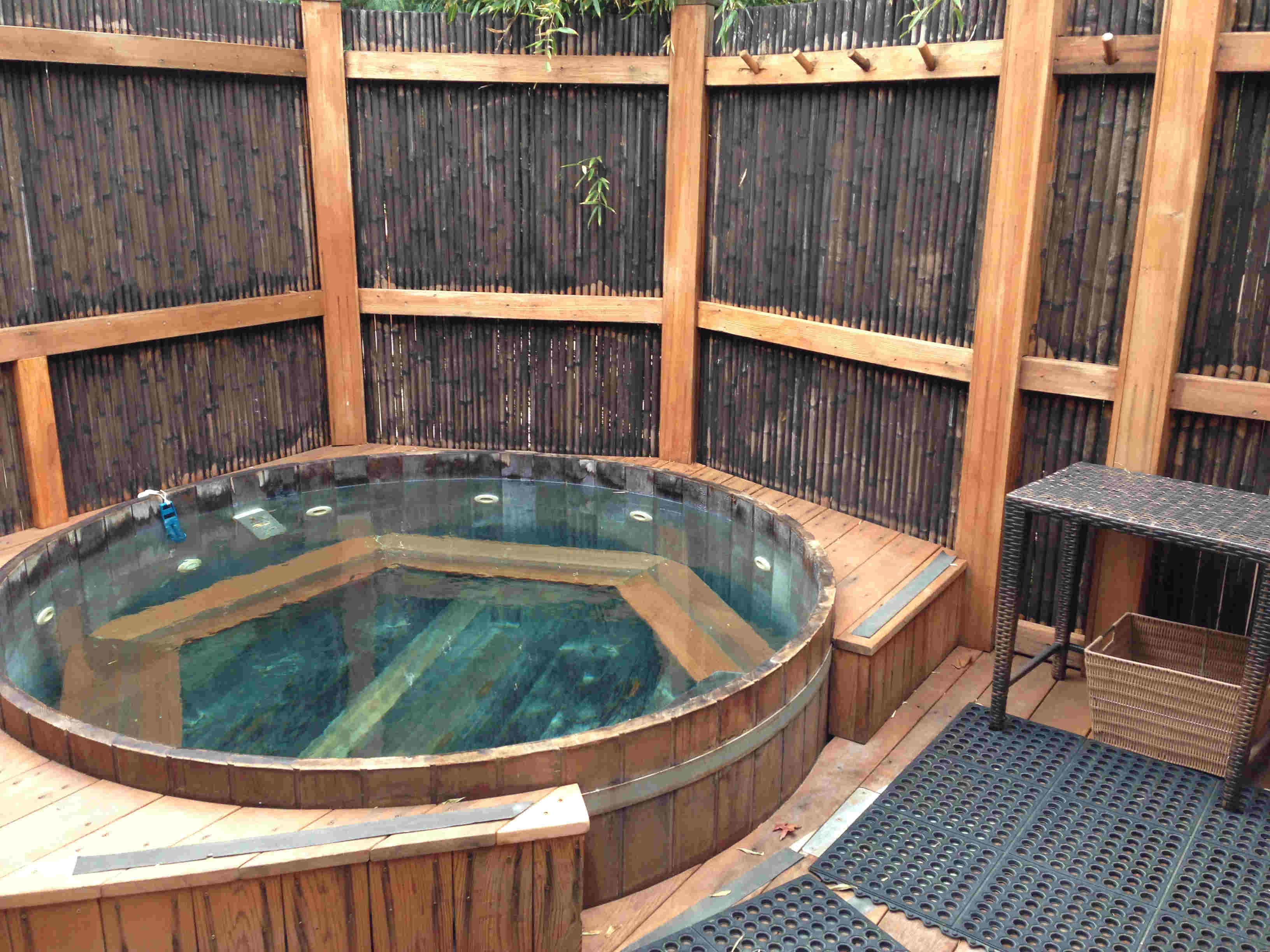 ジャ~ン、露天風呂です!妻と二人で入ったのですが、十分な大きさでした。ちなみに、水着を着て入ります。